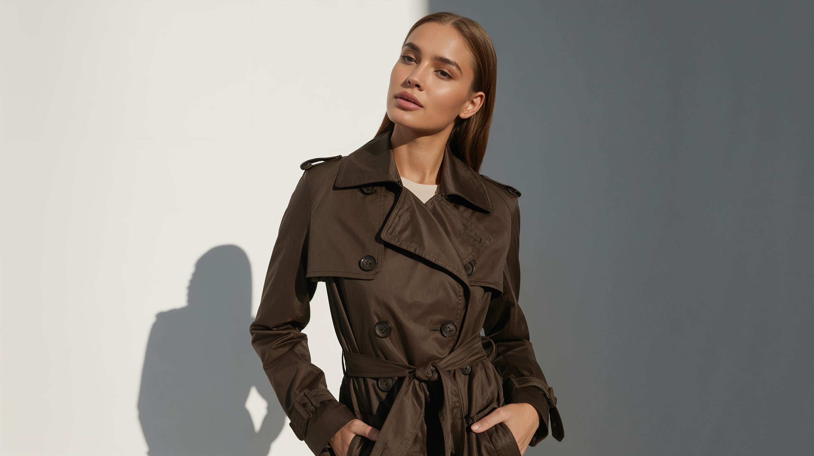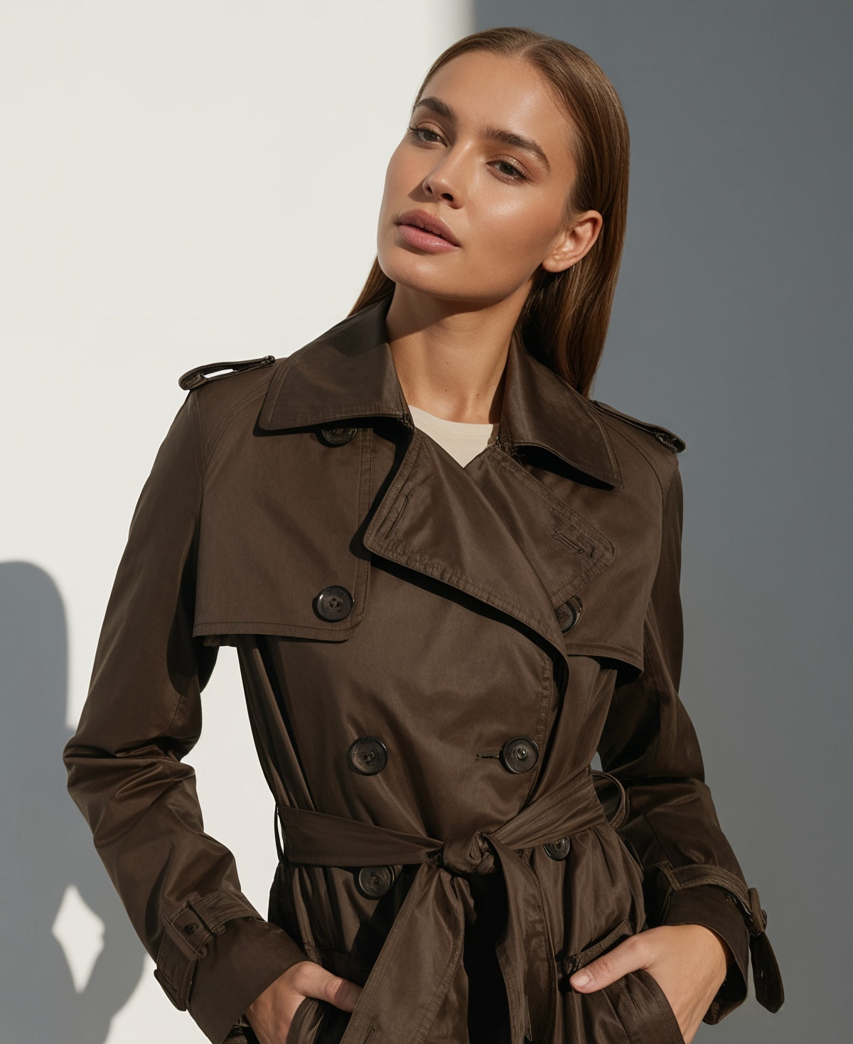 Women's Double Breasted Belted Long Winter Trench Coat