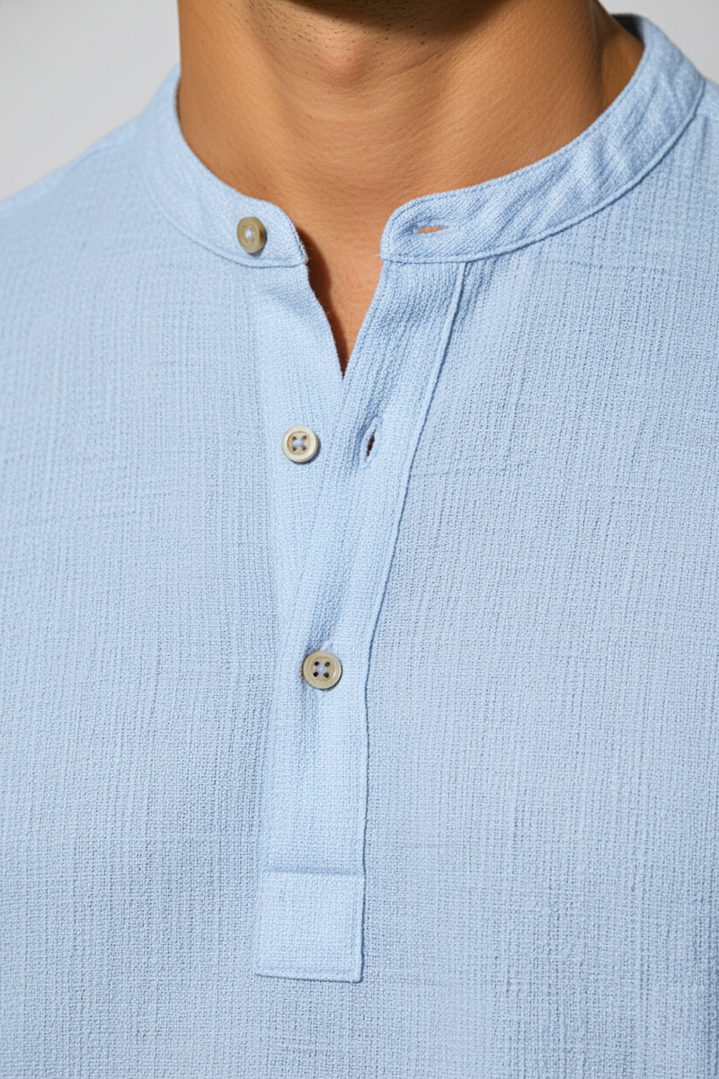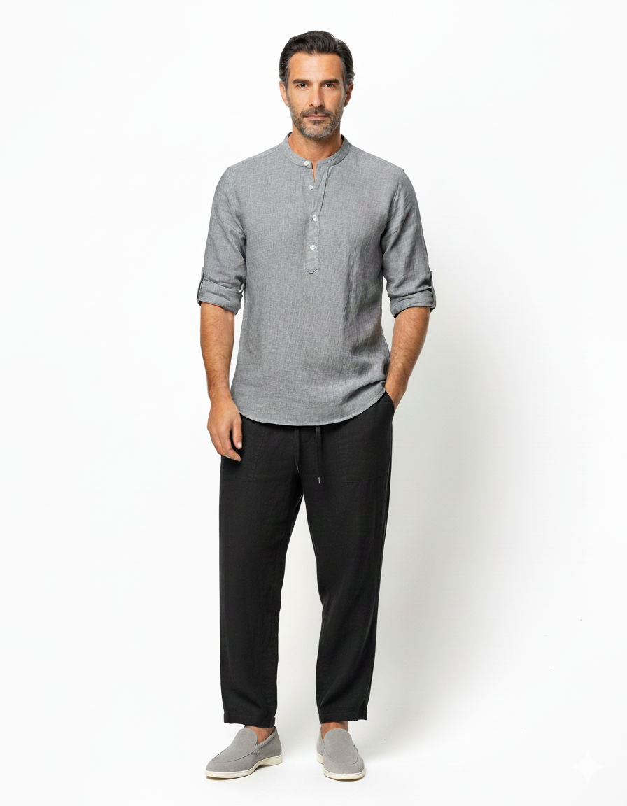 Our casual classic half-button shirt offers a straightforward blend of style and comfort, allowing freedom of movement without restriction. It is designed for everyday casual wear, with simplicity and ease prioritised. This makes it suitable for work meetings or evenings out.