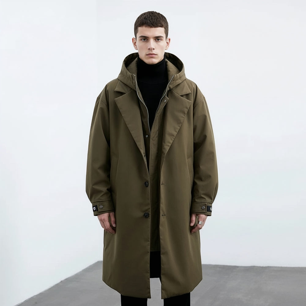 Men's Long Hooded Waterproof Puffer Winter Trench Coat