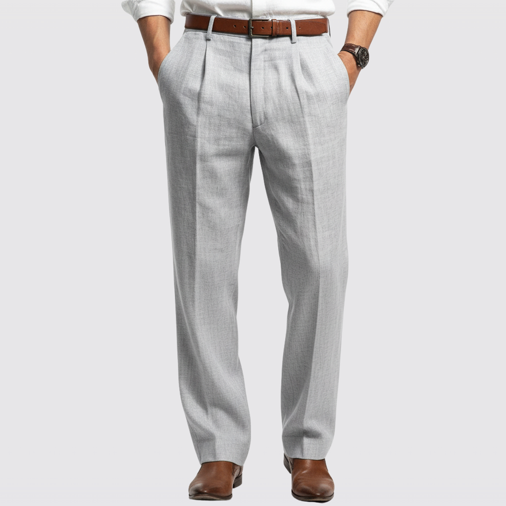 These relaxed pleated trousers offer a baggy fit for easy comfort, with a classic suit-inspired look in neutral shades like grey, black, beige, and white. The subtle texture and front pleats add a touch of smart casual style, perfect for pairing with shirts or polos on everyday outings or relaxed office days.