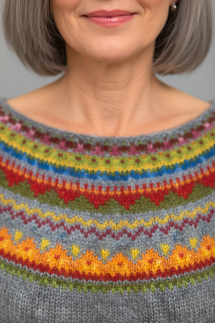 Women's Grey Fair Isle Crew Neck Yoke Jumper