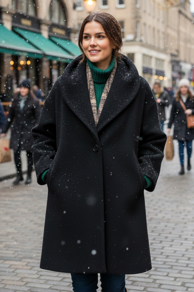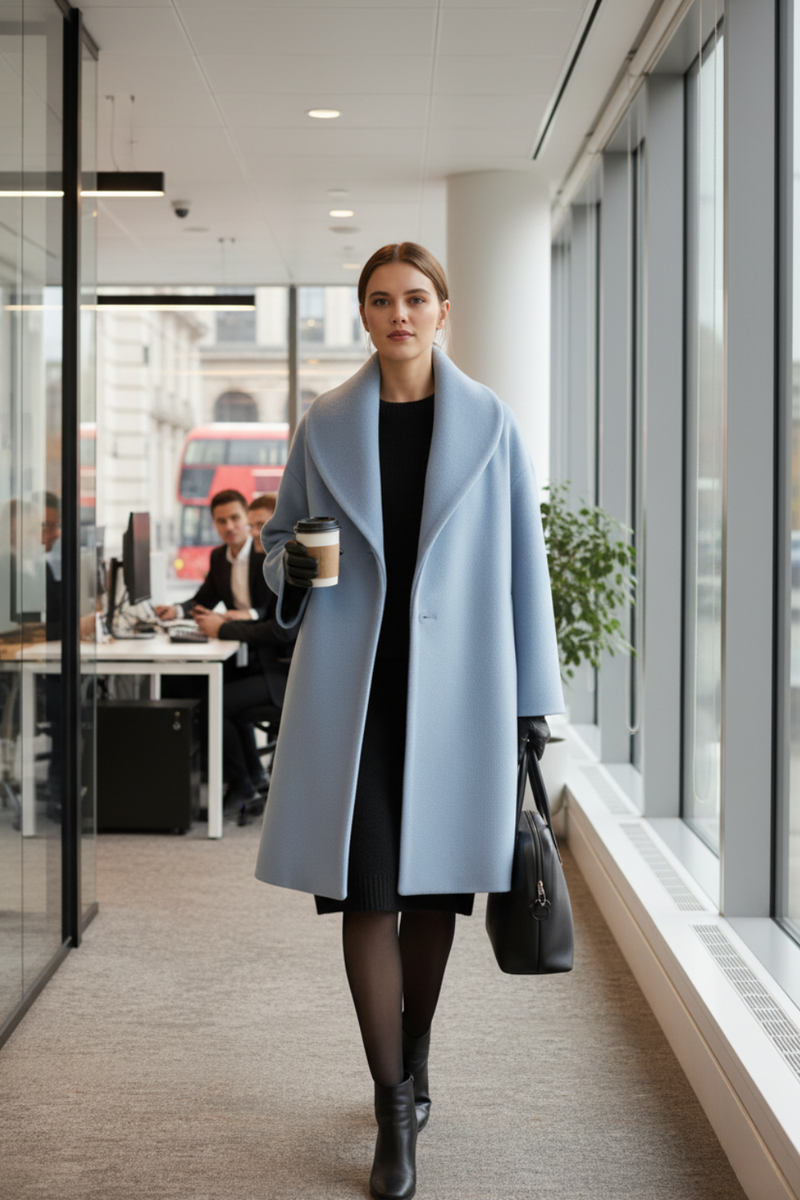 Wrap up in our soft winter coat that moves with you on chilly days, with this coat's relaxed fit draping from collar to hem for easy layering over knits or dresses. Its single button and wide sleeves give a clean, timeless line that pairs with jeans for walks or skirts for dinners—stay warm and sharp through the autumn and winter season.