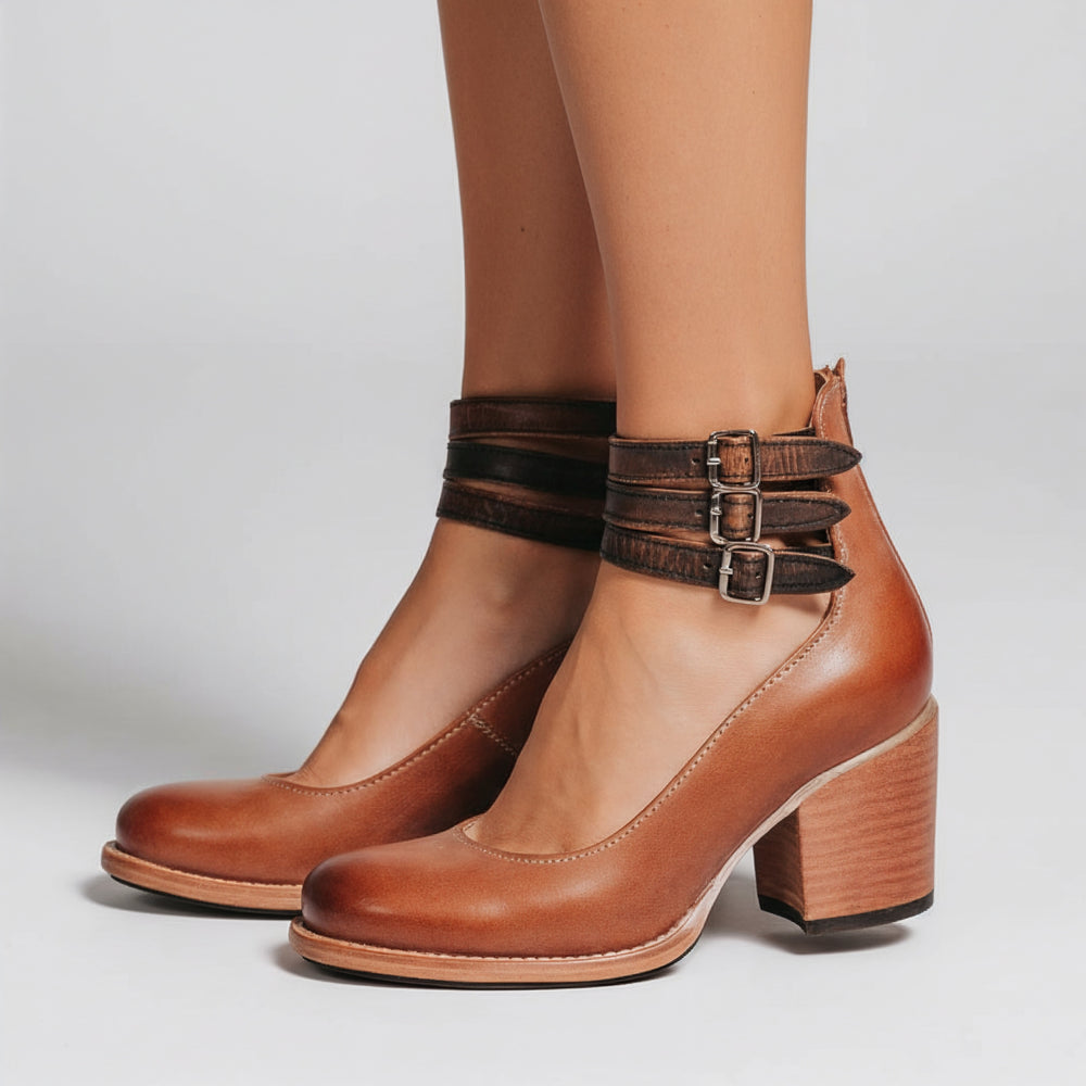 These ankle boots give you steady height with a block heel that's easy on the feet for long nights out. The multiple buckles wrap your ankle for a secure fit, while the soft leather or croc-print upper adds edge to dresses or jeans—perfect for Christmas parties or casual dinners, keeping you grounded and stylish.